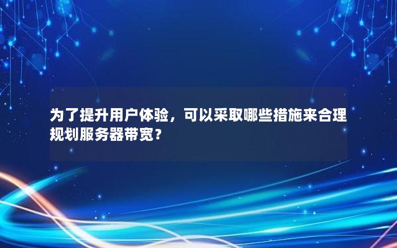 合理规划服务器带宽是一项复杂而又必要的任务,它涉及到多个方面的考量。只有从整体出发,综合运用多种方法才能真正实现既满足当前需求又能适应未来发展的目标,从而为用户提供更加流畅、稳定的访问体验。