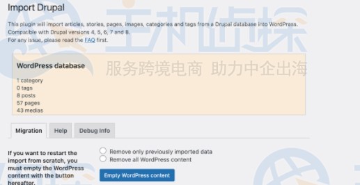 4、运行导入器会将您带到插件的主要配置和设置页面。您可以在此处填写将您的网站从 Drupal 迁移到 WordPress 所需的所有相关信息。