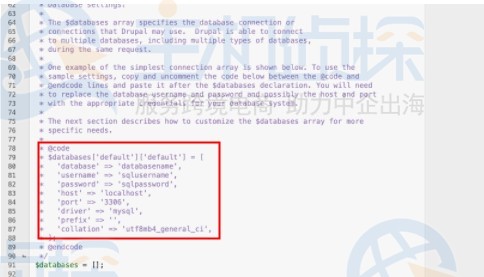 settings.php文件打开后,您可以看到相关的Drupal数据库参数。