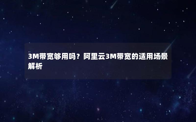 对于个人博客或者访问量较小的小型网站来说,3M带宽通常是足够的。如果您的网站主要是静态页面,比如展示文章、图片等内容,并且日均独立访客数不超过几千人,那么3M带宽应该能够满足基本需求。这类站点通常不会产生大量的上传流量,因此下行带宽的压力相对较小。