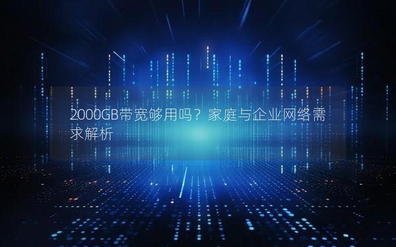 2000GB的带宽对于一般家庭来说可能是绰绰有余的,但对于一些特殊需求或大型企业而言则未必足够。具体选择多大的带宽取决于实际应用场景和个人偏好。建议用户根据自身情况合理评估所需带宽大小,并据此选择合适的套餐以避免不必要的浪费。