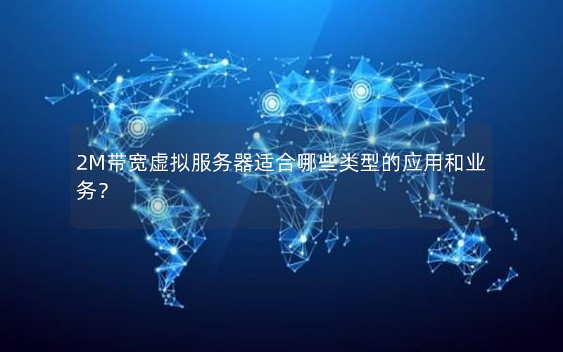 2M带宽的虚拟服务器适用于那些对网络性能要求不高、用户数量有限的应用场景。在实际选择过程中还需要综合考虑其他因素如CPU核心数、内存大小等硬件配置来确保最终的服务质量。