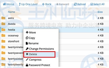3、主题文件夹下,选择所要删除的WordPress主题,右键单击并删除主题文件即可。
