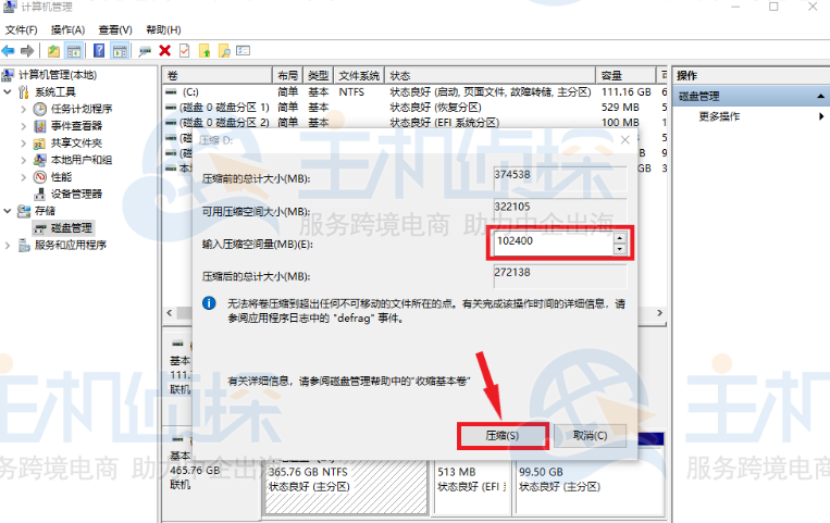 4、为Ubuntu安装空出分区:此电脑->管理->磁盘管理,选择一个磁盘