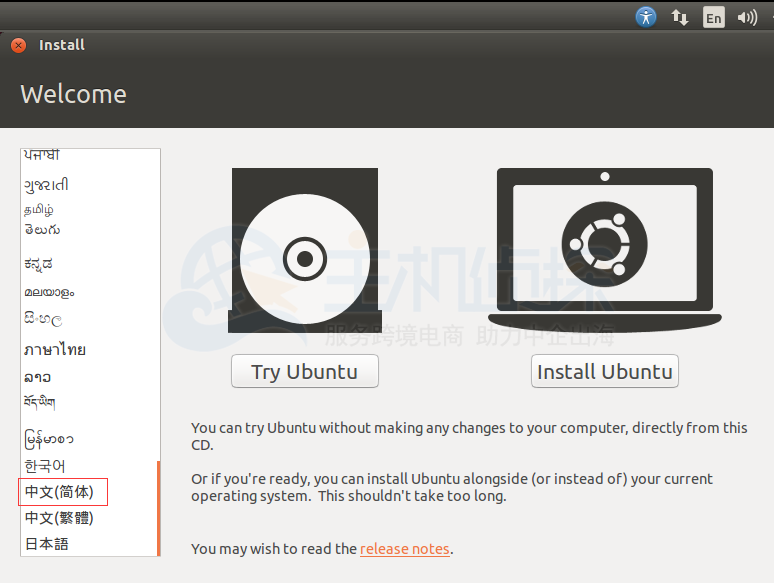 11、然后就会来到如图所示页面,选择中文简体点击Install Ubuntu