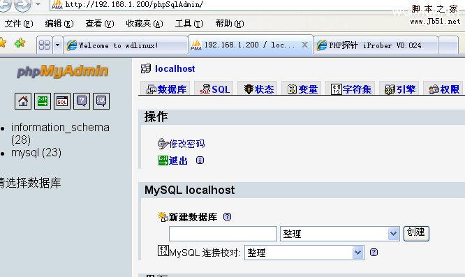 mysql的默认管理用户也是root,但这里的root,和上面系统的root是同名而不同人,也就是说不相关的.登录后如下图所示