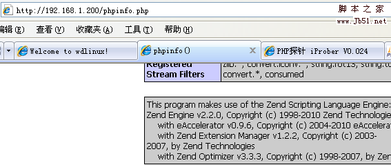 从这个phpinfo可以看到,装好系统,默认已是支持Zend,eaccelerator等加速器了
