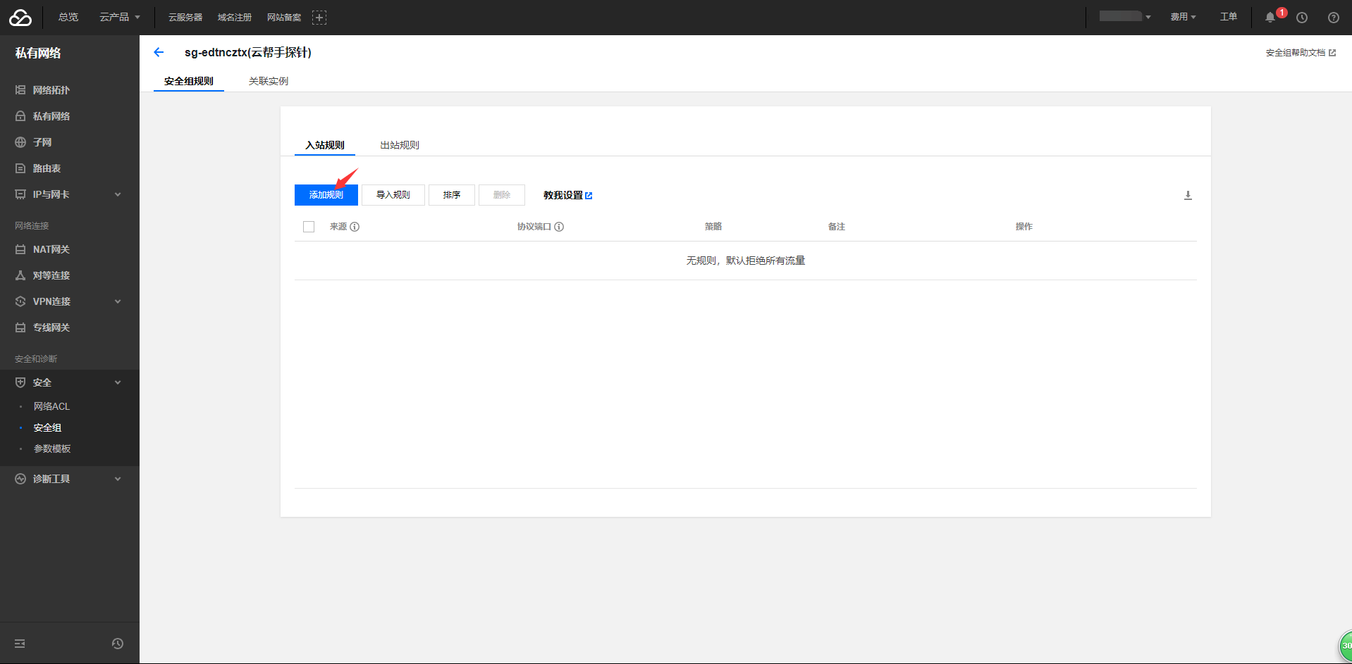 云帮手探针端服务将监听6688端口,需要手动将其添加到阿里云控制台安全组中,否则将无法正常提供服务!