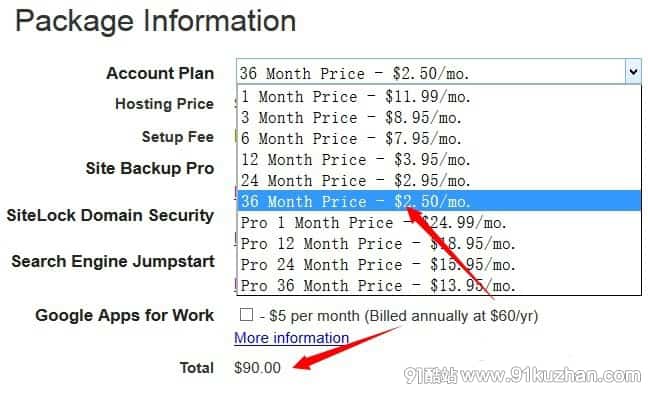 在年限方案上,年付是$3.95/月,3年付款是99美元(平均每年是33美元),显然是购买年限越多越好。因为JustHost主机是支持任意时间退款的,所以我个人建议大家购买3年的比较划算,如果我们第二年,不需要使用,我们也可以选择退款,然后会把剩下的时间这算钱给我们的。