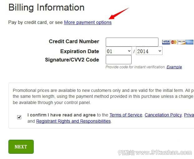 默认是信用卡付款,我们也可以点击More payment options切换使用PAYPAL付款。这样我们只要付款就可以了,即刻开通信会发送到我们的邮箱中。