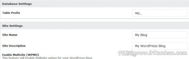 三、填写wordpress网站信息,Table Prefix为数据库表前缀,一般默认为wp_不需要修改;