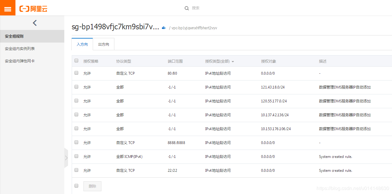 入方向看到的就是目前服务器的安全组规则了,你可以在这里添加、修改、删除规则。