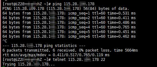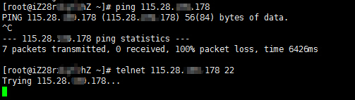 3、设置完成后需要进行ping、telnet测试,如果均不连通,说明安全组的限制已经生效: