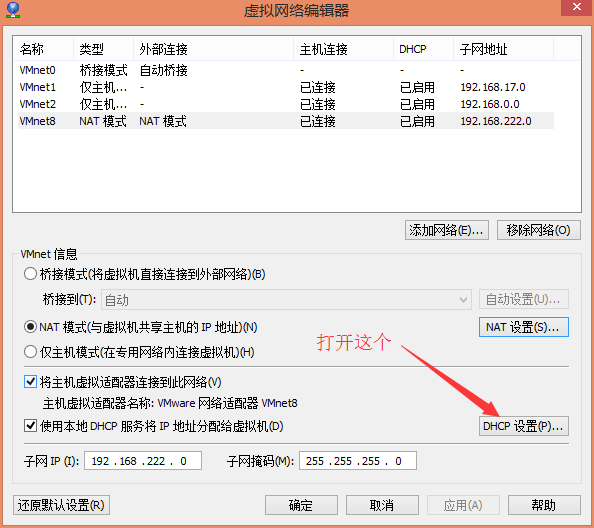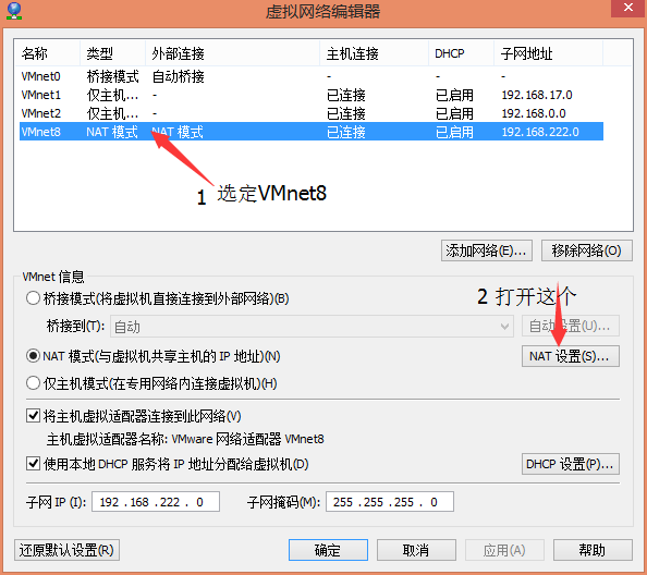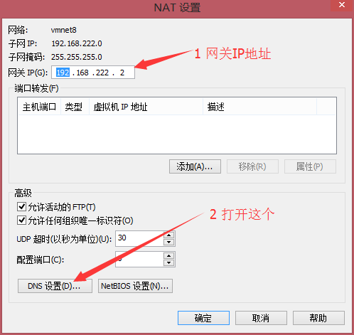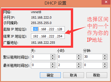 IP地址:192.168.222.128到192.168.222.254之间的一个,例如192.168.222.129