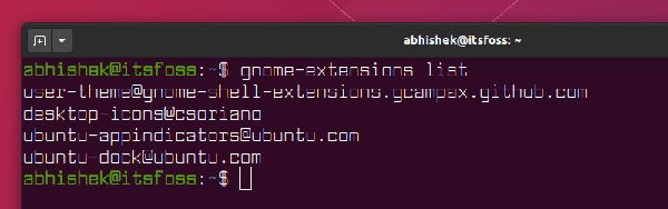 在终端中,使用以下命令列出所有可用的 GNOME 扩展: