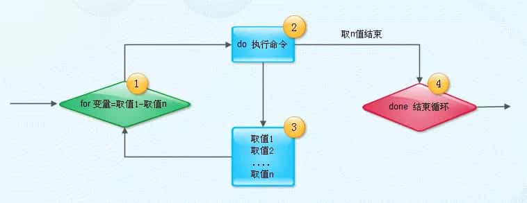 行1,讲串行中的字段迭代放入变量中 行2-4,接着将重复执行do和done之间的命令区域,直到串行中每一个字段均处理过为止。