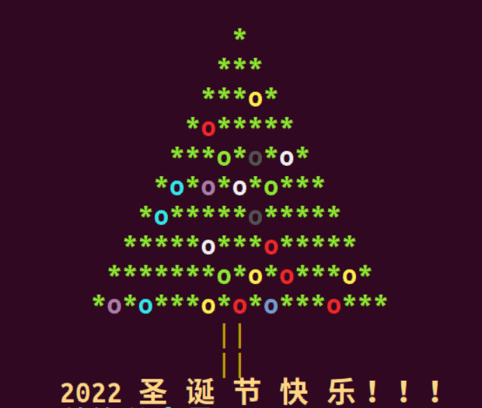 - tput cup $lin $((c – 10)); echo $new_year 圣 诞 节 快 乐!!!