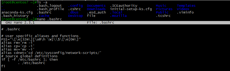当然现在是可以了,但是如果你退出了,就没有了,你要永久保存还需要把这个命令写到文本里面,通常是定义在自己的家目录里,因为每个人的个人习惯是不同的,定义的别名也不同,所以自己创建自己习惯的别名就好了,用ls -a 可以看到一个目录,.bashrc这个目录,我们就需要把刚刚创建的那个别名命令输入到.bashrc这个目录里,输入命令nano .bashrc进入这个文本,把刚创建的命令按它的顺序复制或者在输入一遍,ctrl+o保存,然后退出ctrl+x,一般刚刚定义完别名是不会立马生效的,一般直接exit退出就可以立即生效了,也可以用.来立即生效,输入. .bashrc就生效了,然后可以用alias来查看刚创建的别名。
