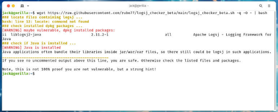 - wget https://raw.githubusercontent.com/rubo77/log4j_checker_beta/main/log4j_checker_beta.sh -q -O – | bash