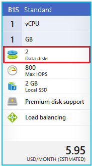 首先需要确认的是你创建的虚机是否支持添加数据磁盘,这个问题其实也可以忽略。因为现在最便宜的虚机都能支持添加两块数据磁盘。更贵的虚机会支持添加更多的数据盘,所以这里注意一下就可以了。可以在虚机的 size 中进行查看: