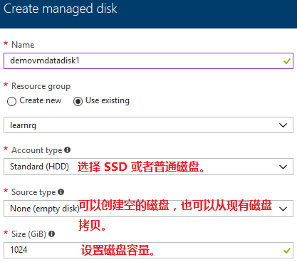 本文 demo 中的磁盘类型都选择托管磁盘。