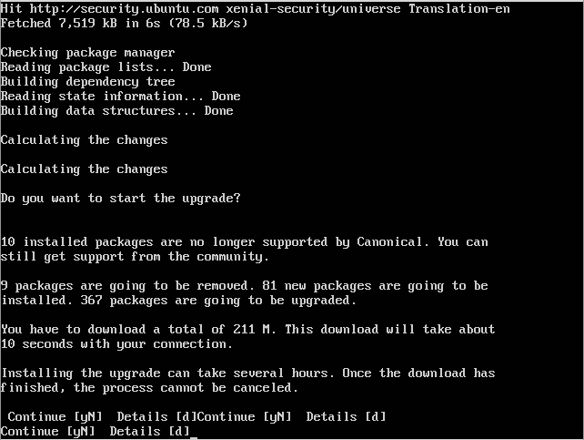 8、系统会提示删除过时的包,输入“y”,并在升级过程完成后,使用以下命令重新启动服务器: