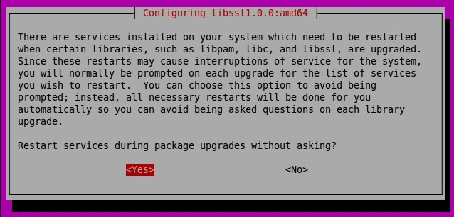 7、随着升级的系统,必须重启某些服务,选择yes并继续