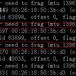 如果报文超过MTU值又不能分片,就会丢弃报文,返回一个错误信息unreachable-need to frag(不可到达,需要分片)。 如图所示。