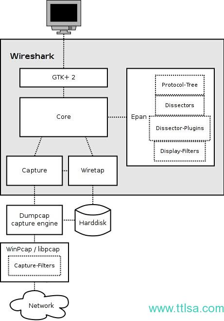 Wireshark基于libpcap on unix-like,winpcap on windows。Tcpdump同样基于libpcap实现。Libpcap来自于BPF,下图是BPF的一个结构图: