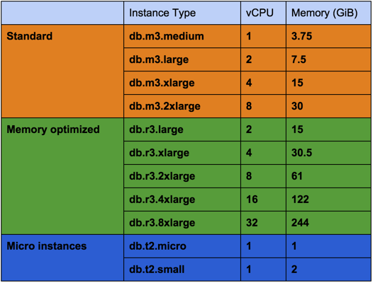 基本规格根据CPU和内存使用来划分,Amazon RDS有如下基本规格: