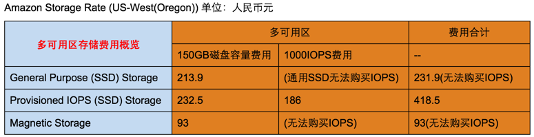 “通用存储/SSD”:只会按照存储空间的大小来计费,范围是5GB到3TB,价格比较便宜。这类存储,不会按照IOPS计费,存储到底提供多少IOPS,Amazon也没有明确说明。