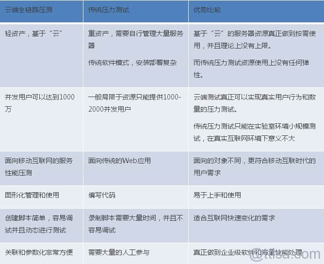 传统压力测试工具如LoadRunner、Jmeter、StormRunner等,往往只关注后端系统在峰值负载压力下的运行状况,而且性能测试几乎都是在实验室环境下完成,这类环境通常是一种小型的生产环境,测试也都在小规模水平上完成,并会通过结果推算出最大生产数量,测试结果并不准确。同时这些压测工具存在着一些共同的缺点,例如测试周期漫长,测试环境单一,测试成本高等等。特别是随着移动互联网的兴起以及云计算技术的广泛应用,敏捷开发和持续交付成为主流,产品迭代周期越来越短,用户环境越来越复杂,传统的压力测试手段已经很难满足产品全生命周期的需求。