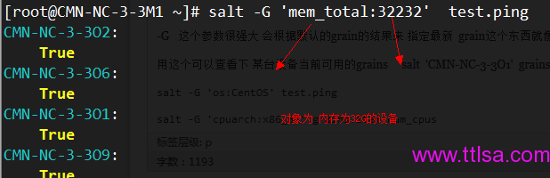 -G 这个参数很强大 会根据默认的grain的结果来 指定最新 grain这个东西就像puppet里面的facter这个东西