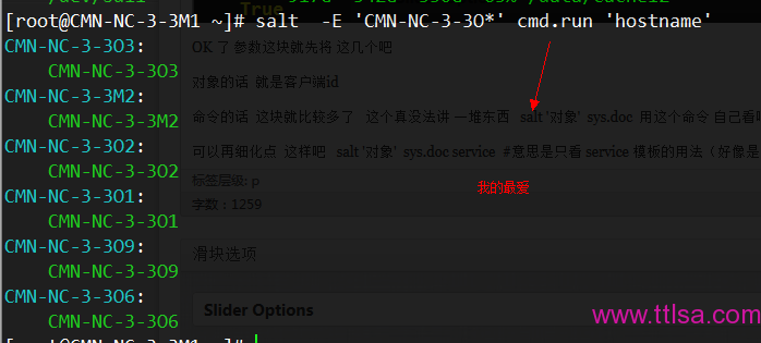 命令的话 这块就比较多了 这个真没法讲 一堆东西 salt ‘对象’ sys.doc 用这个命令 自己看吧 很多的