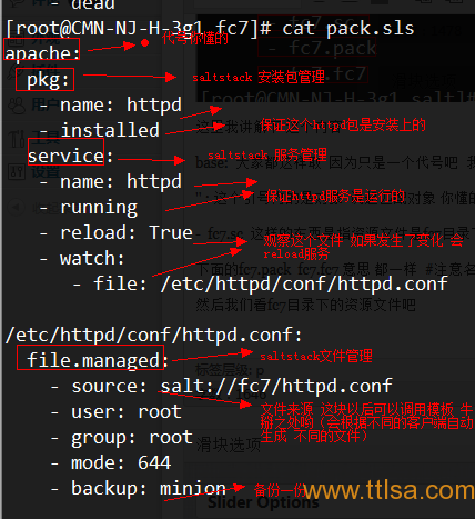 关于配置文件 这里我多说一句 saltstack的配置文件格式都是YAML 的 配置的时候注意下 语法