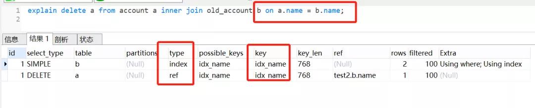 那如何优化这个问题呢?通过上面的分析,显然可以把delete in子查询改为join的方式。我们改为join的方式后,再explain看下: