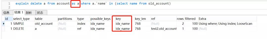 what?为啥加个别名,delete in子查询又行了,又走索引了?