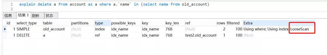 我们回过头来看看explain的执行计划,可以发现Extra那一栏,有个LooseScan。