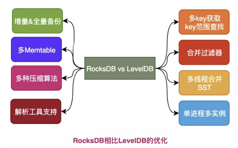 - RocksDB支持多线程合并,而LevelDB是单线程合并的,多核时代前者效率更高。