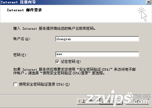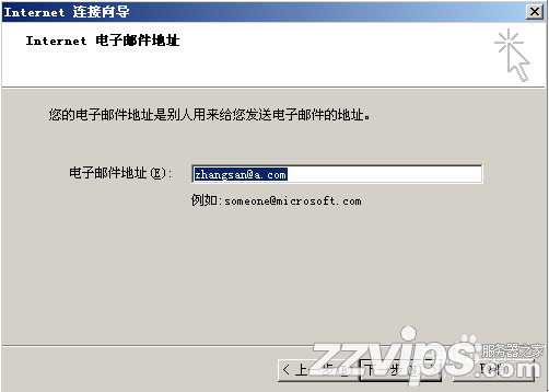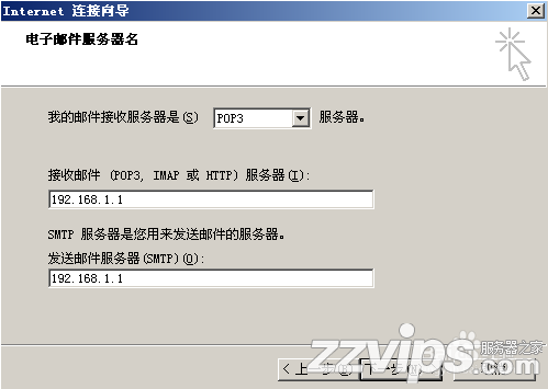 输入相应的发送和接收邮件的服务器地址,单击“下一步”。