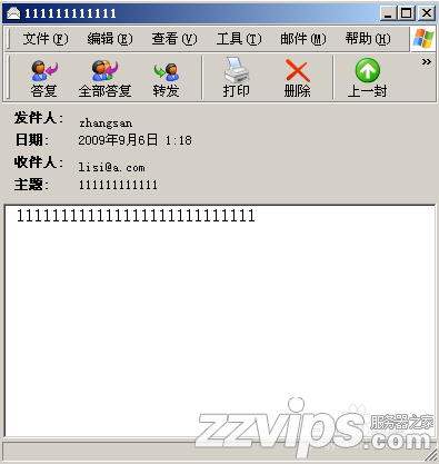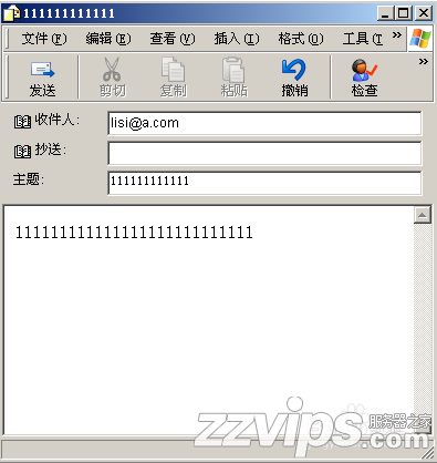 Zhangsan@a.com给lisi@a.com发送一封邮件,单击“发送”。