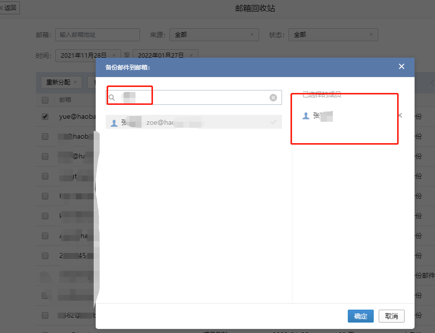 2、重新分配给成员:需先在通讯录为成员创建账号,创建账号后回收站选择分配给成员,会替换成员企业邮箱账号。被替换后的邮箱会进入回收站,来源显示邮箱解绑且未彻底删除的情况下保存60天。