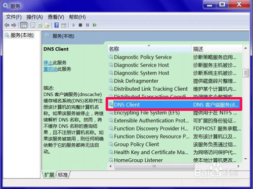 进入系统服务窗口后,找到DNS Client这一项,双击打开属性修改窗口。