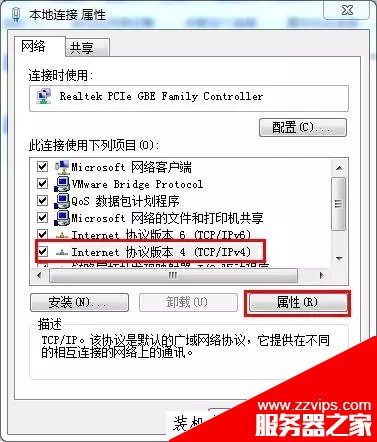 2、鼠标右击“本地连接”选择“属性”→点选“Internet 协议4(TCP/IPv4)”再点击“属性”。