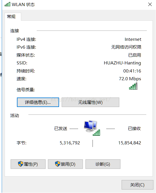 打开网络和共享中心,左键单击我们连接的无线网
