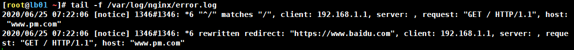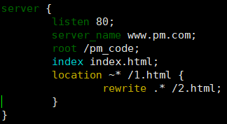 注:^/意思为以根(这里根目录为/pm_code,对应域名为www.pm.com)开头的url都会重定向到百度。