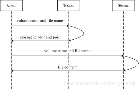 (1)client询问tracker下载文件的storage,参数为文件标识(组名和文件名);