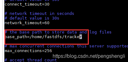 修改:base_path=/home/fastdfs/tracker (注意:在启动前必须存在此目录,否则会报错,找不到路径,也就是说需要手动新建tracker目录)