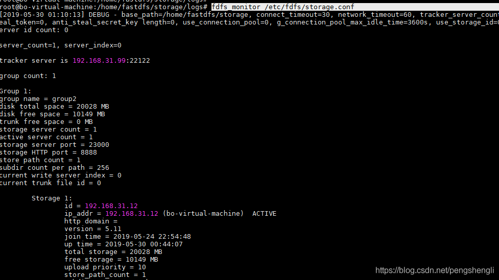 # fdfs_monitor /etc/fdfs/storage.conf |
