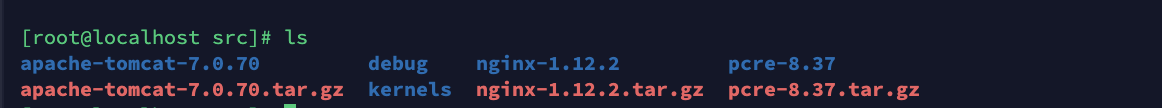 将tomcat解压到/usr/src下。启动需要jdk环境。没有jdk环境的装一下,我centos7自带jdk1.8。